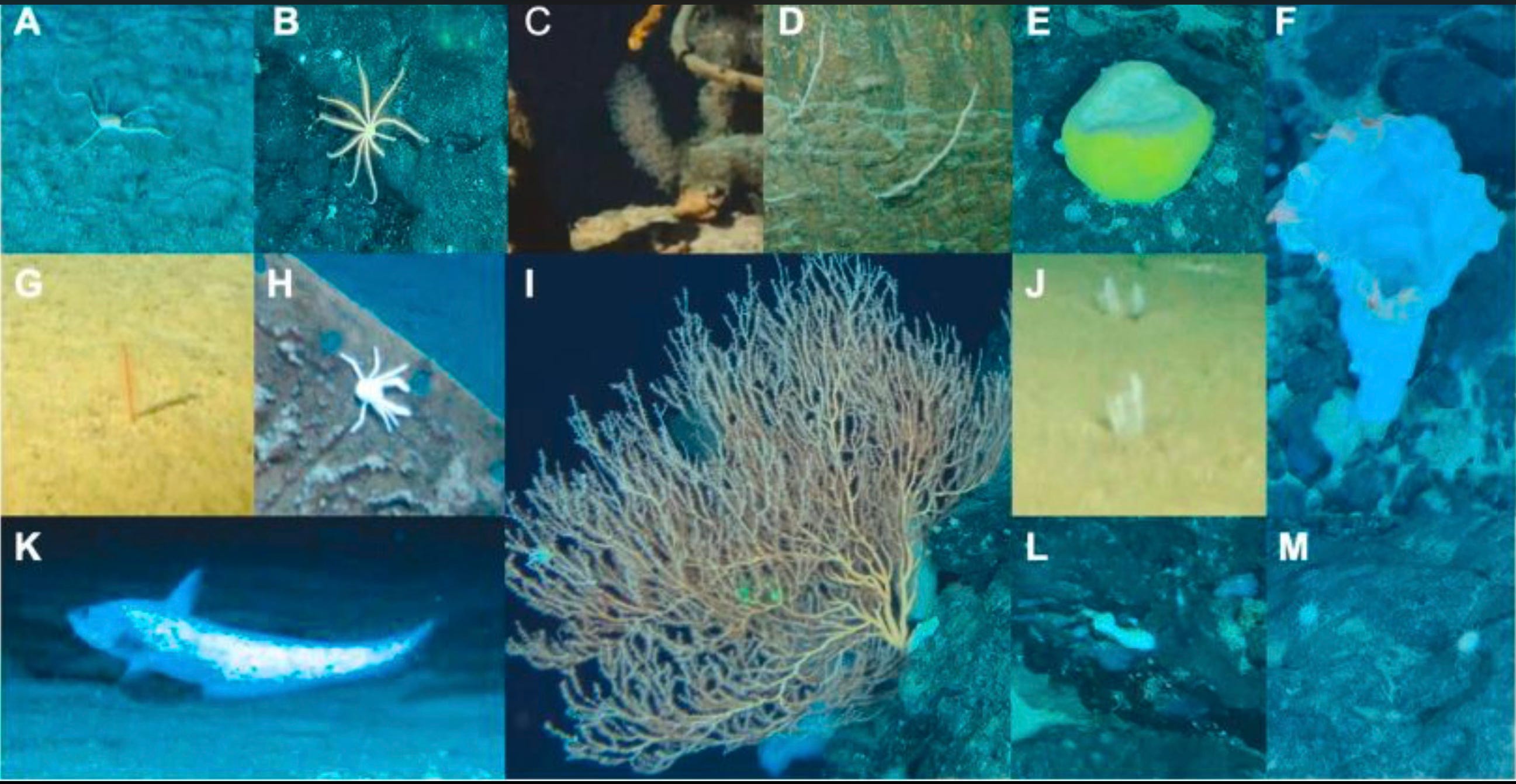 Strange animals have been found 3,800 m deep at the Titanic wreck. Bacteria and a cold-water coral species live on the bow railings, many deep-water creatures are living in and around the ruined ship…including ghost-white squat lobsters, skulking brittle stars, twisted bamboo corals, sea anemones, sea sponges, barnacles, squat lobsters, and the big-eyed rattail fish.