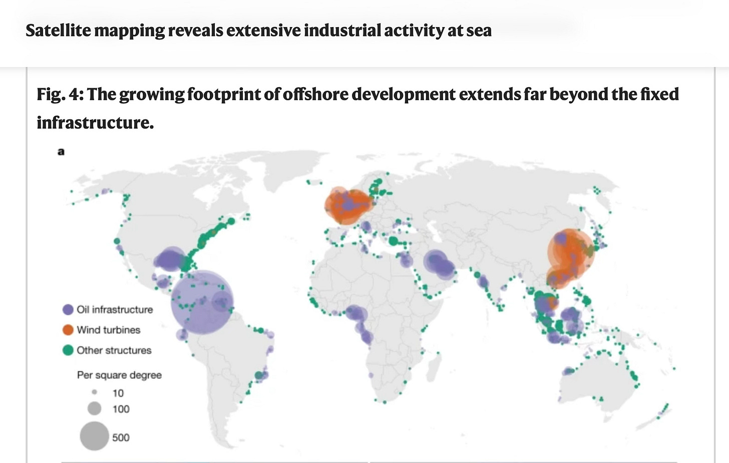 Off-shore development including oil infrastructure, wind turbines, subsea pipelines, artificial islands, and other structures.